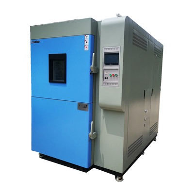【产品用途】 温度冲击试验箱适用于电子、汽车配件、塑胶、军用部品等安全性能测试及产品的筛选,测试各种材料对高、低温的反复抵抗能力。试验产品对于热胀冷缩所产生的化学变化和物理伤害。 【系统要求】 电路系统负载短路保护:压缩机过压、过电流、低压保护;电源缺相相序保护;水冷系统缺水保护;箱体各区独立超温保护。 【箱体结构】 箱体内部材质釆用不锈钢SUS304,外部为镀锌钢板数控加工成型,并加以表面喷塑处理保护。 试验箱分为高温区、低温区、两部分。 采用独特的绝热结构及蓄冷热处理。 试验时试验样品放置提篮区,应用提篮升降方式,将产品导入高温区和低温区,从而进行温度冲击。 可独立设定高温、低温及温度冲击三种不同试验功能,进行温度冲击时,同时具备高、低温试验的功能。 上下提篮切换时间为10秒内完成,温度冲击时温度恢复时间为5分钟内完成。 【系统要求】 采用触控式彩色液晶(LCD)显示人机界面,操作简单,可切换中、英文显示操作系统。具有RS-232通讯界面,可于电脑上设计程序运行、收集测试资料与记录。具备全自动高准确系统回路,任何一机构运行完全由PLC控制处理,温度控制精度高,采用P.I.D自动演算控制执行。 运行中发生异常状况,屏幕上即刻显示故障报警,同时紧急停止试验运行。 【规格与技术参数】